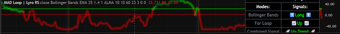 这个振荡器会自动识别延续和均值回归阶段,并在内部切换计算逻辑。如果MAD Loop的信号不清晰或者走平,直接跳过当次信号。