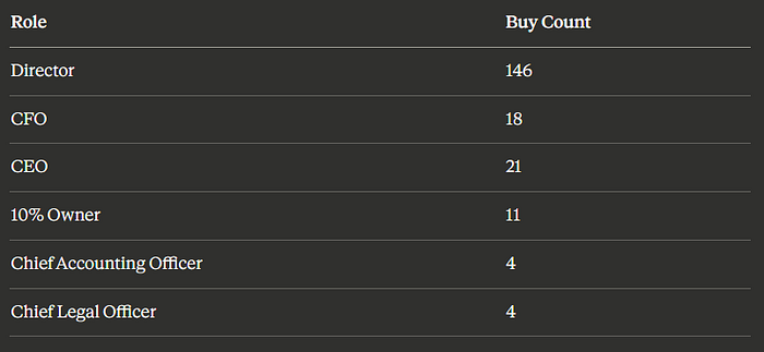 - 重视董事的买入行为:不要只盯着CEO的动态,董事的买入行为往往更有参考价值。