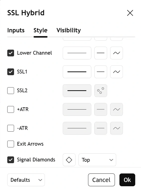 然后点击Style选项卡,按下图藏掉多余选项,让屏幕能清爽:一条SSL线管趋势,一堆点子管转折。
