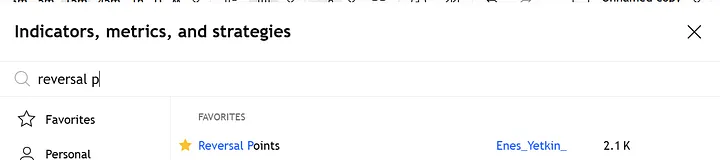 除了SSL指标外,这里还可以搭配使用反转信号指标作为确认工具,这样可以提高交易的胜率。搜索 Reversal Points,并将其添加到图表中。