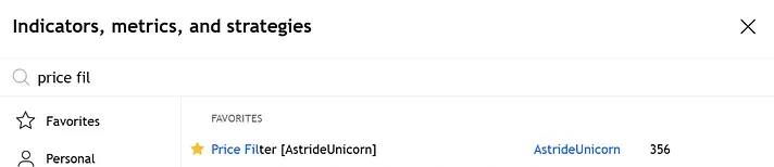 打开TradingView,选择您想要交易的图表,然后搜索 Price Filter 并将其添加到图表中。
