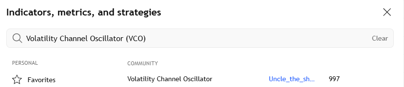 然后再搜索Volatility Channel Oscillator (VCO),选择Uncle开头的版本。使用默认配置即可。