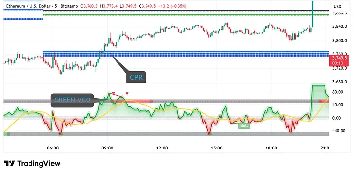 最近以太坊(ETH)那波快速下杀,很多人措手不及。但其实,早在下跌前几个小时,市场已经悄悄发出了信号。而我用的,就是一套简单但高效的“双指标组合”:CPR + VCO