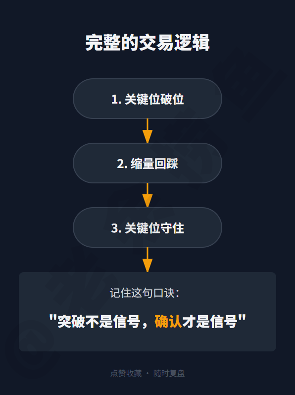 💡 交易口诀: 破位 ➔ 回踩 ➔ 守住 ➔ 动能出现 不要急着做第一笔交易,确认才是真正的入场券 。