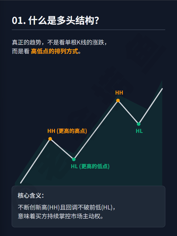 【核心观点】很多新手亏钱的原因,是在趋势里做反转,在震荡里做突破。 如何判断趋势是否健康?答案只有一个:看结构(Structure)。图解结构突破的核心逻辑,建议反复研读 。