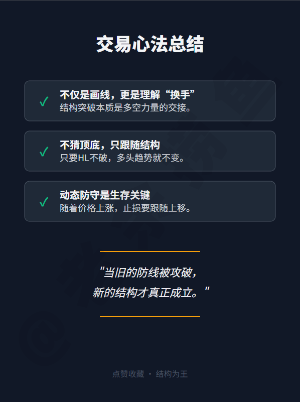 💡 交易感悟: 结构突破不是让你去追高,而是让你确认“谁在控盘”。 当旧的防线被攻破,新的结构才真正成立 。