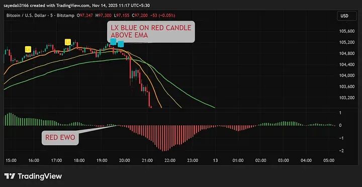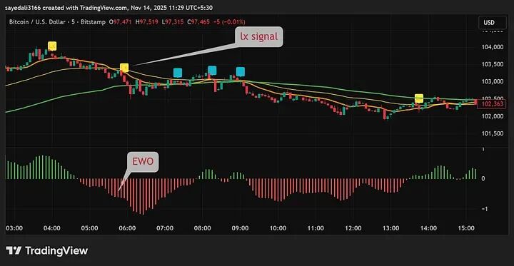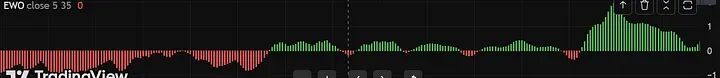 - 在上涨趋势中: 相反,如果EWO变红,那是给你上车的机会,不是让你逃命的信号。