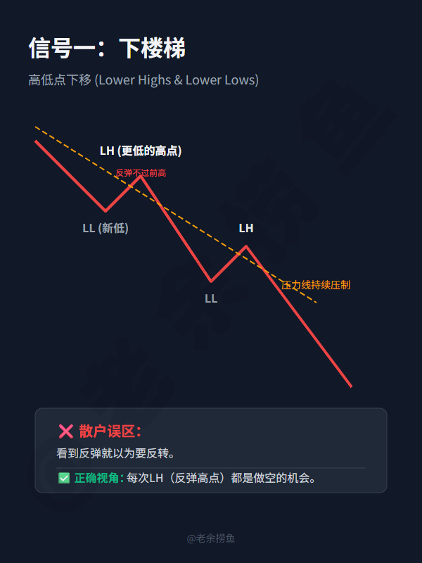#老余捞鱼 #下跌趋势 #技术分析 #均线系统 #价格行为 #交易干货 #止损 #顺势交易