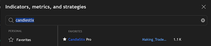 点击”指标”,搜索 Candlestix,添加后只勾选:锤子线(Hammer)、射击之星(Shooting Star),其余全部关闭。