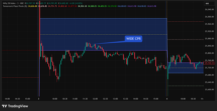适中CPR三条线有一定间距方向性与震荡混合等待突破确认后跟进日内趋势交易者