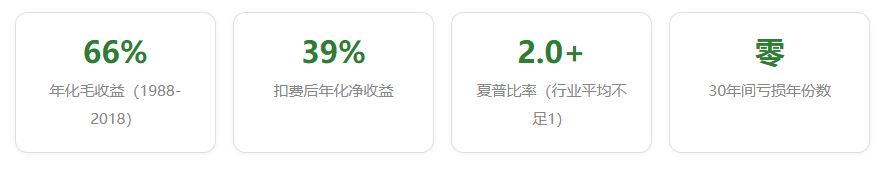 这套操作在1961年到1965年间,给他带来了年化约25%的回报。整个职业生涯下来,28.5年年化20%,没有一年亏损。
