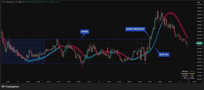 做多信号示例:价格突破区间上沿且趋势线变蓝 | 来源:TradingView